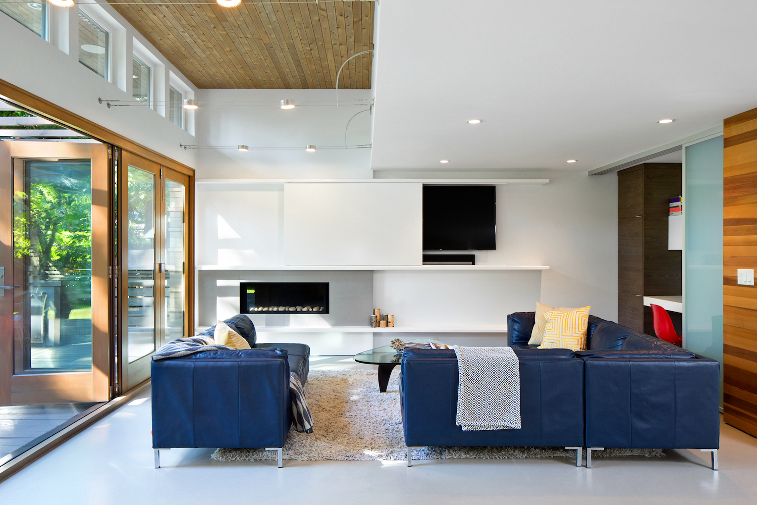 A five-panel Eclipse door from the main living area opens out to an expansive back patio, complete with fire pit and outdoor kitchen. The perfect spot to entertain guests or take in the surroundings.