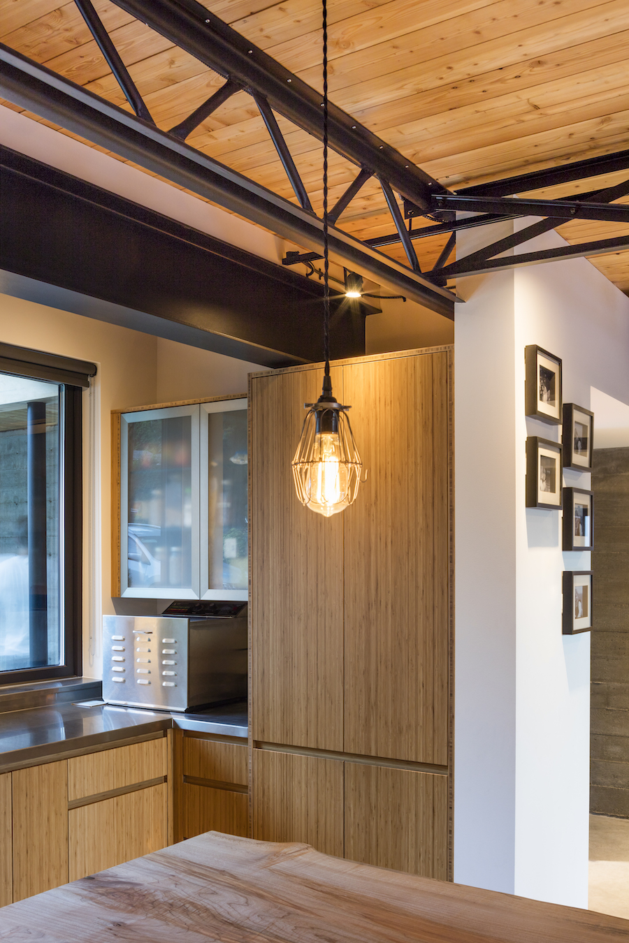 Trey’s airways and immune system are also easily compromised, so clean air was always a top priority. We used all-natural materials and completely avoided chemicals to reduce any harmful toxins. In the kitchen, for example, stainless steel countertops and a naturally finished, live-edge wooden island provide a clean, functional space to protect Trey.