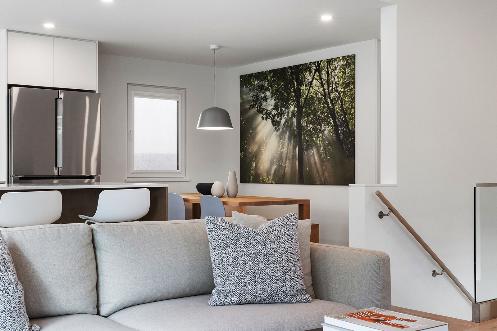 Much like their original purpose—to house large, often multigenerational families in one space—the renovation made the home suitable for intergenerational living once again. The owner’s have welcomed a parent into the lower floor suite, while maintaining privacy in their own living area. Grandma is close at hand for family get togethers and impromptu childminding, while the family has peace of mind that Grandma is safe and comfortable.