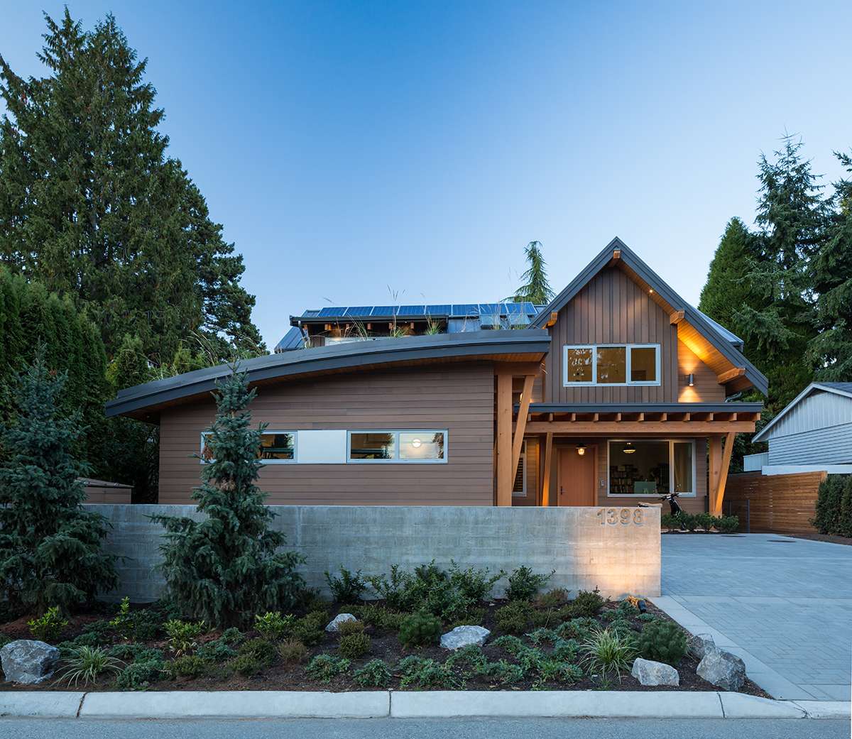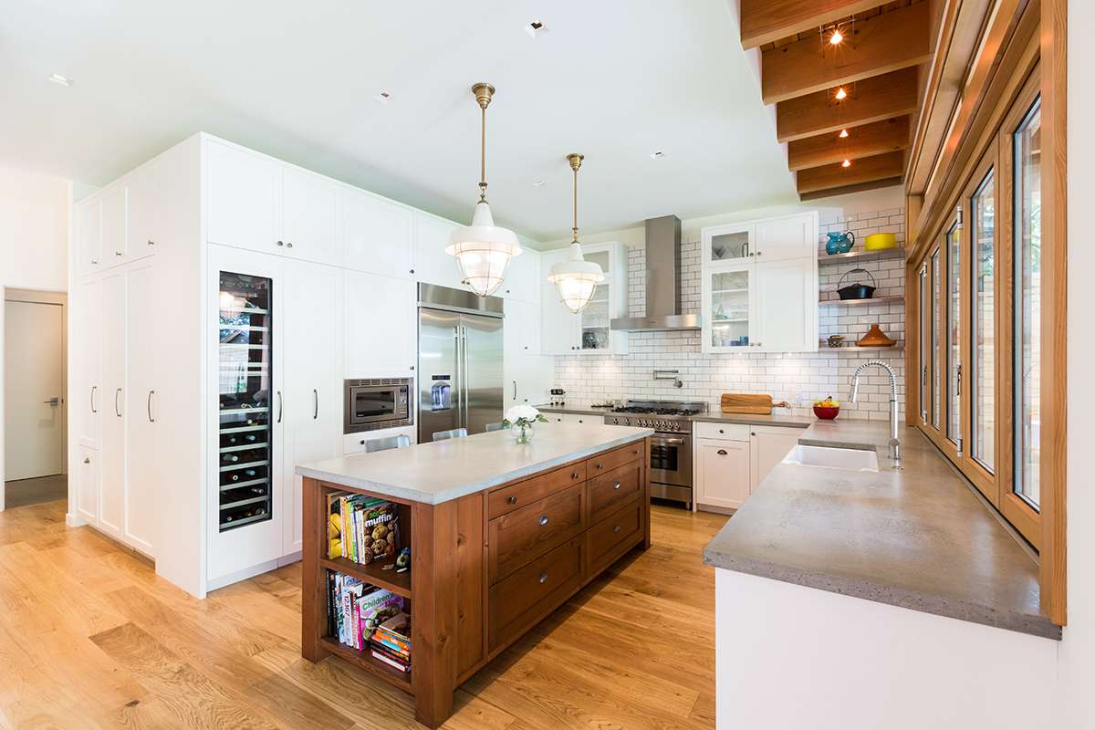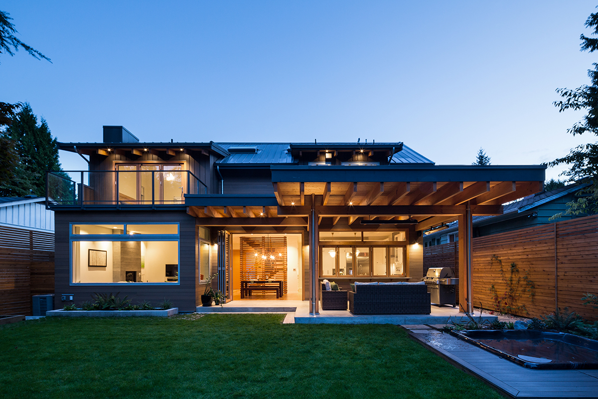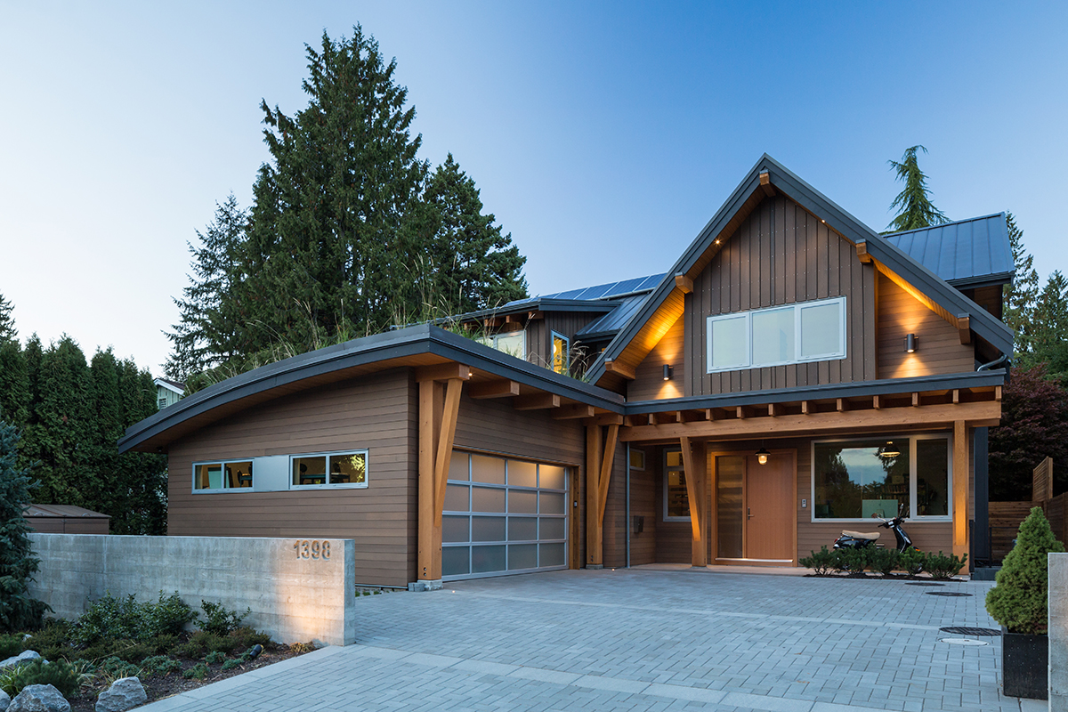 We wanted the exterior design to remind us of a modern chalet one might see in Whistler. Inside, the house is open and simple—and it keeps energy costs to a minimum. With three kids, we use lots of household energy on a daily basis. —Travis Cadieu, Client